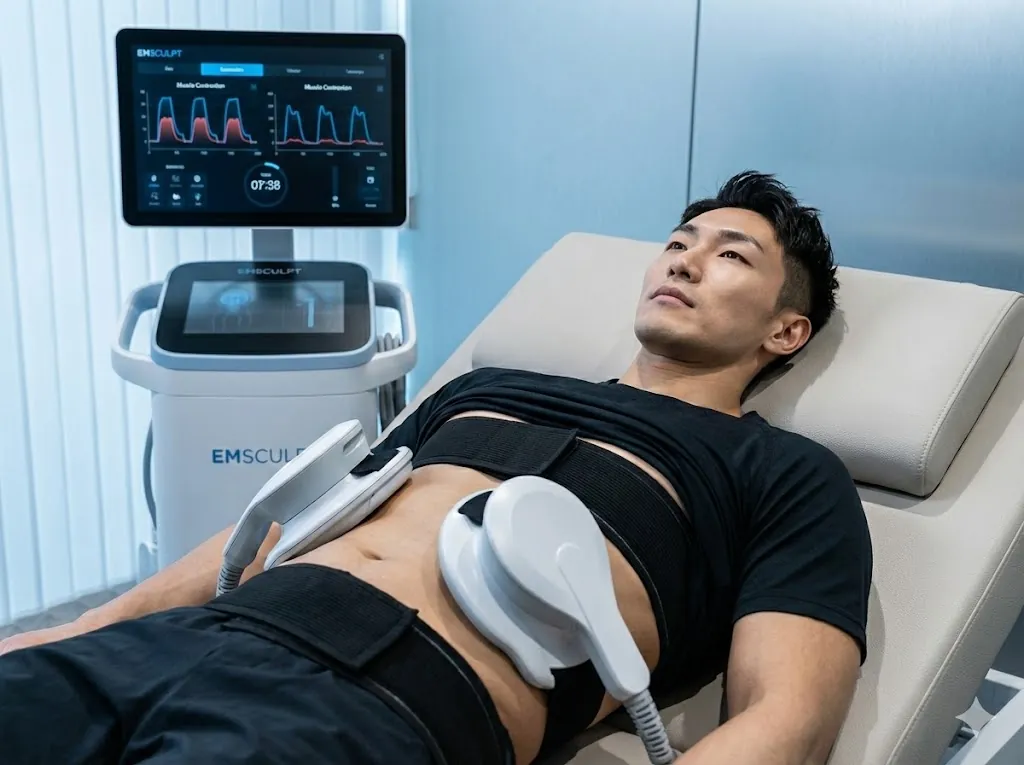 Emsculpt is the world's first non-invasive procedure to build muscle and sculpt the body. Using High-Intensity Focused Electromagnetic (HIFEM) energy, it induces 20,000 supramaximal contractions in a 30-minute session — equivalent to doing 20,000 crunches or squats. This intense stimulation forces the muscle to adapt, creating new muscle fibers (hypertrophy) while simultaneously breaking down fat cells in the treated area.