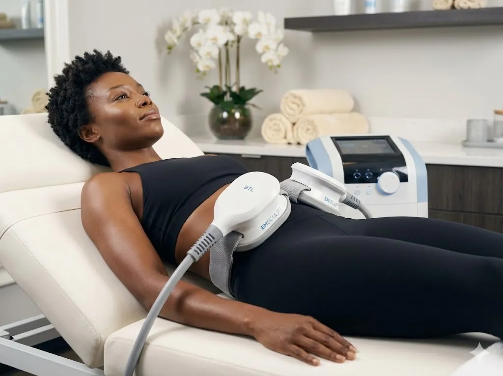 Exclusive to Skin Art MD: Combine Emsculpt (Abdominals) with Emsella (Pelvic Floor) for total core strength restoration.